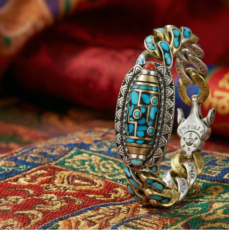 Pulsera de Turquesa con Cuentas Dzi de Nueve Ojos